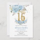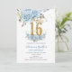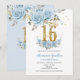 Baby Blue Floral Gold Sweet 16 Sixteen Birthday Invitation