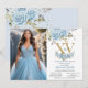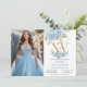 Baby Blue Floral Gold XV Quinceañera Quince Photo Invitation