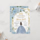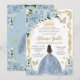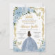 Baby Blue Floral Princess Dress Gold Quinceanera Invitation