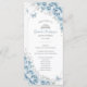 Baby blue, green, silver and white Quinceanera celebration program. Slim double sided order of events card. Features, script font, silver butterflies, watercolor roses and tiara. Perfect for an elegant princess style glam celebration. Personalise with your own details. Printed Zazzle invitations or instant download digital printable template.