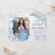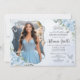 Baby Blue Floral Silver Quinceañera 16th Picture Invitation