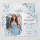 Personalise this elegant baby blue floral Quinceañera / Sweet 16 birthday photo/ picture invitation easily and quickly. Simply click the Edit Using Design Tool button to further edit the texts, change fonts, fonts colours and adjust the picture. Featuring pretty pastel baby blue flowers, delicate greenery and blue and silver butterflies. Matching items available in store. (c) Somerset Fine Paperie