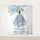 Personalise this elegant baby blue floral birthday tapestry backdrop banner with your own wording easily and quickly. Simply click the Edit Using Design Tools button to further edit the text, wording, font style, font size, font colour, add more text, move or remove some images. Featuring a beautiful baby blue rose floral arrangement and a girl in a baby blue ball gown. Perfect for Sweet 16, Quinceanera, Debutante Ball, Princess Party and more occasions! Matching items available in store. (c) Somerset Fine Paperie.