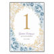 Baby blue gold Quinceanera celebration table number cards. Features, script font, gold butterflies, watercolor roses and tiara. Perfect for an elegant princess style glam celebration. Personalize with your own details. Printed Zazzle invitations or instant download digital printable template.