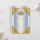 Blue prince baby shower invitations with beautiful baby blue and gold crown on an elegant baby blue and gold swirl background on the front and beautiful gold dots on the same baby blue background on the back. These baby blue and gold prince baby shower invitations are easily customised for your event by simply adding your details in the font style and wording of your choice. You can move the crown and gold divider as needed.