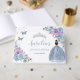 Cherish your special day for the years to come with a customised guest book. Featuring a quince girl in a baby blue gown, pretty pastel baby blue and purple lilac flowers and blue and silver butterflies. Personalise it with your details easily and quickly, simply press the customise it button to further re-arrange and format the style and placement of the text. (c) The Happy Cat Studio