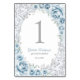 Baby blue silver Quinceanera celebration table number cards. Features, script font, silver butterflies, watercolor roses and tiara. Perfect for an elegant princess style glam celebration. Personalize with your own details. Printed Zazzle invitations or instant download digital printable template.