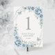 Baby blue, silver and white Quinceanera celebration table number cards. Features, script font, silver butterflies, watercolor roses and tiara. Perfect for an elegant princess style glam celebration. Personalise with your own details. Printed Zazzle invitations or instant download digital printable template.