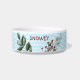 Modern design pet bowl featuring baby blue and white stripped pattern with winter red berries and greenery for your lovely companion. Click to 'Personalise the Template' to write your dog's name. Love Dogs, Always!