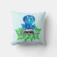 This is an adorable baby pillow for a baby boy with an illustration of a baby blue dinosaur sitting on a rock. This would make a great decoration for a nursery or kid's room and to make this even more special, it can be personalised by changing the name on it.