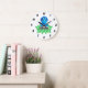 This is an adorable wall clock for a boy's nursery room with an illustration of a baby blue dinosaur sitting on a rock. This would make a wonderful gift, and to make this even more special, it can be personalized by changing the name on it.