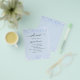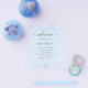 A baby blue background decorated with confetti, sparkles. Personalise and add your names and wedding details. Black coloured letters. If you have more text it's possible to reduce the line space.
