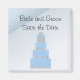 Pretty shades of baby blue on this wedding cake accent this elegant save the date.