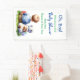 Blue and green boy's baby shower Welcome banner. Cute watercolor baby boy and a bulldog by his side.