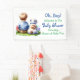 Blue and green boy's baby shower Welcome banner. Cute watercolor baby boy and a bulldog by his side.