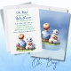 Blue and green boy's baby shower invitation. Cute watercolor baby boy and a bulldog by his side.