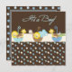 A Digitalbcon Images Design featuring a blue, brown and white colour theme with a variety of custom images, shapes, patterns, styles and fonts in this one-of-a-kind Baby Announcement Card. This attractive and colourful announcement card comes complete with a complementary design on the reverse with customisable text lettering to suit your special announcement.