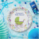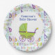 Adorable boy baby shower plate featuring a green baby carriage.