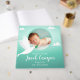 Mark your baby boy's first steps into faith with this elegant baptism guest book. The design showcases a symbolic white dove with an olive branch, set against a tranquil teal heart and sky-like background. This guest book serves as a beautiful place for loved ones to share their blessings and heartfelt messages on this significant day. It's a touching way to remember everyone who shared in the joy of your child's baptism and the beginning of their spiritual path. Preserve the memories and love from this day with a keepsake that truly honors the occasion.
