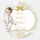 Baby Boy Baptism Communion White & Gold Classic Round Sticker