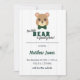 Got a baby boy on the way? Destined to be a bear? It's the perfect theme for a baby shower! This cute invitation is done in green and yellow gold with an adorable baby boy bear - complete with bowtie - at the top. Personalise with your baby's birth details and your names and add a vertical photo to the back.