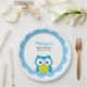 Baby Boy Big Eyed Smiling Owl Paper Plate