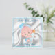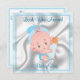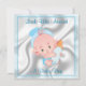 Cute Baby Boy Birth Announcement- satin look backdrop with baby blue lace border- cute cartoon baby boy with blue diaper and hat holding a blue baby bottle