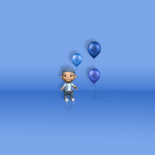 A cute baby shower design in blue shades, a baby boy with blue balloons on a blue background.