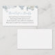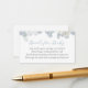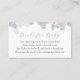 A book request insert card for baby shower. Featuring watercolor blue flowers with poem: "ONE SMALL REQUEST, WE HOPE NOT TOO HARD PLEASE BRING A BOOK INSTEAD OF A CARD THEY'LL CHERISH THE BOOK, WELL LOVED OR BRAND NEW PLEASE SIGN THE INSIDE WITH A MESSAGE FROM YOU!"