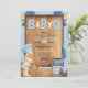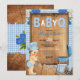 Baby Boy Blue Gingham Wood Flowers Baby Q Barbecue Invitation