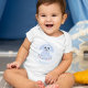 This fun, modern, elegant and simple baby boy bodysuit features a hand-painted cute adorable puppy in blue pastel colour. The design include personalised baby's name in modern trendy typography.