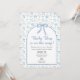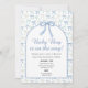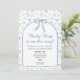 This invitation features a watercolor pattern of blue bows.