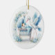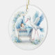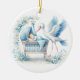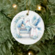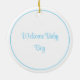 This ceramic ornament is shown with a cute baby boy and stork watercolor art print.