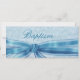 This baby boy christening invitation with its blue watercolor damask background and coordinating blue faux satin bow is an elegant choice for your baptism or christening invitations. All text is customisable. Add your christening or baptism details. You can experiment with different types of paper to get just the look you want. This design is currently featured on an ice hued metallic paper which gives your christening invitation an extra special shimmer and glow.