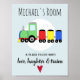 Baby Boy Colourful Locomotive Train Name Nursery Poster
