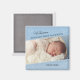 An elegant photo frame magnet featuring your own baby photo framed by a dusty blue and sparkly design. A sweet and memorable gift for close family like grandparents. You can also add other texts, like birth weight and length if you like.