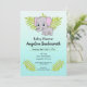 This cute elephant theme blue baby shower invitation is great for anyone needing an invitation for a baby boy. It has a baby elephant with greenery in the background. Customise the name, dates, location, and registry information for the mother to be!