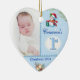 Beautiful personalized ceramic heart ornament decoration family photo keepsake of little baby boys 1st Christmas to hang on the wall and on the tree every year. Personalize it with a photo of your child and his name, keep a record of him as he grow up to hang on the tree.