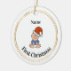 This ornament features a baby boy (in blue). Type in the boy's name in the customise box. On the back, then type in the current year, or the birthdate. I also offer this style in a baby girl as well. Designed by Sheila Cicchi, Brownielocks.com. All Rights Reserved.