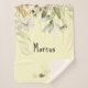 Mid-1600's Dutch watercolor still life floral art and personal name, decorate this warm and ultra-soft Sherpa fleece stroller blanket for a sweet baby boy. Change or remove name using the simple Template provided. This blanket is a small-- 30" wide by 40" long. Two larger sizes are available. See "About This Product" at side for more information and care. HIGH ratings. [background: Cream Yellow #FFFDD0]