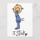 An adorable baby boy in a blue sleeper and text that reads "I Stink" on stick figure baby boy T-shirts, creepers, long sleeve t-shirts, stickers, cards, postage, and more!