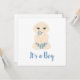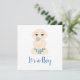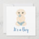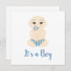 This baby shower invitation for baby boy has a modern and fun design with a baby boy illustration in blue shades.