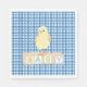 A baby chick with a blue gingham background boy's baby shower paper plates.