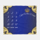 Boy milestone blanket with beautiful royal blue and gold crown on a royal blue and gold swirl background. This beautiful prince baby milestone blanket is perfect for baby's milestone photo sessions. Simply find a couple pretty gold frames and place one around the number and the other around the day, month or year, and place baby under the name area. You can also move the crown and name as needed. You can also add more text to the bottom area and change the font to your preference.