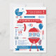 Fun modern graphic banners, barbecue grill, balloon, baby buggy ,baby bottle, baby pacifier, baby rattle, hot dog, and other bbq elements make this invitation great for a couples BaByQ shower. The back of the card has a cute picnic chequerboard pattern (you may change the colour by customising / editing) Original Illustration by pj_design / jammydesign