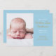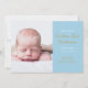 Modern gold script photo baby boy, birth announcement card to introduce your beautiful newborn baby. The front features a photo of your baby along with chic gold and white text for your baby's name and birth stats on a blue panel that you can customise to a colour of your choice. The reverse has golden stars on strings on a matching blue background. Designed by Thisisnotme©