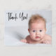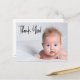 Personalise this horizontal format postcard with your own newborn's adorable photography, capturing those precious early moments with your baby boy. The front of the postcard features a modern and elegant black script handlettering style typography for the word "thank you," adding a touch of sophistication to your message.