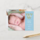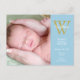 Baby Boy Photo Collage Script Monogram Blue Birth Announcement Postcard