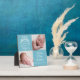 Beautiful blue personalised Christmas photo plaque for a new baby boy. Customise this birth announcement holiday gift with your newborn photo next to the beautiful angel flying over the words A Thrill of Hope the Weary World Rejoices. Rejoice and add your child's name and birth date in elegant white typography.