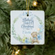 Celebrate your little one’s very first Christmas with this charming personalized ornament designed especially for baby boys. This keepsake features a sweet watercolor teddy bear, soft blue florals, festive balloons, and greenery — the perfect touch of holiday magic.